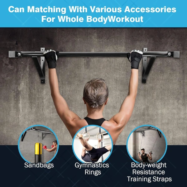 • Modularité & Polyvalence : Bien plus qu’une barre de traction, c’est un véritable ancrage de fitness. Utilisez-la avec des anneaux de gym, des sangles de suspension (type TRX), des élastiques ou même un sac de frappe.