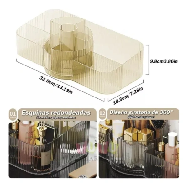 • Rotation à 360° Silencieuse : Naviguez facilement entre vos différents produits. Sa base pivotante vous permet de trouver votre rouge à lèvres ou votre crème en une seconde.