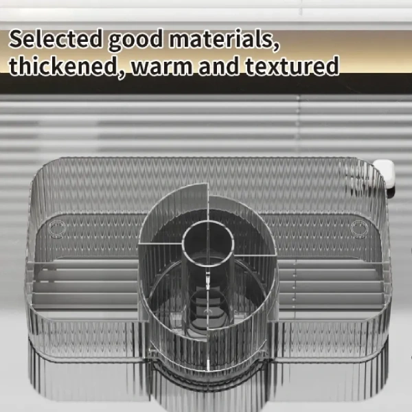 Gagnez du temps avec l’Organisateur de Maquillage Rotatif 360°. En acrylique transparent de haute qualité, il offre 5 compartiments pour vos parfums et cosmétiques. Design luxueux avec finitions textures brillantes. Gardez votre coiffeuse propre et élégante.