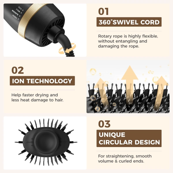 Plus besoin de jongler entre une brosse et un sèche-cheveux : sculptez votre chevelure d’une seule main et profitez d’un confort de coiffage inégalé.