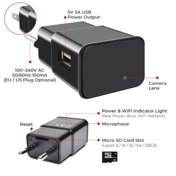 Surveillez en toute discrétion tout en chargeant vos appareils avec la caméra espion WiFi Full HD caché en chargeur USB
