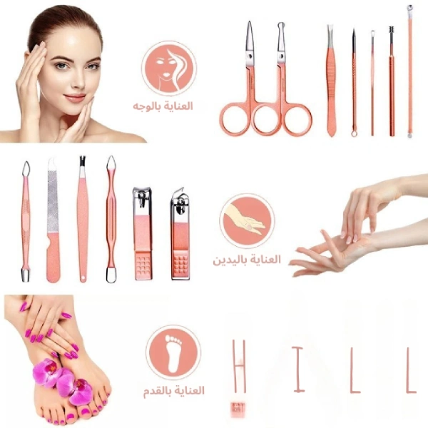 • Ensemble Complet 18-en-1 : Ce kit rassemble les outils indispensables pour l’entretien des mains et des pieds : coupe-ongles, limes, ciseaux de précision, repousse-cuticules, pinces, et outils de nettoyage spécialisés.